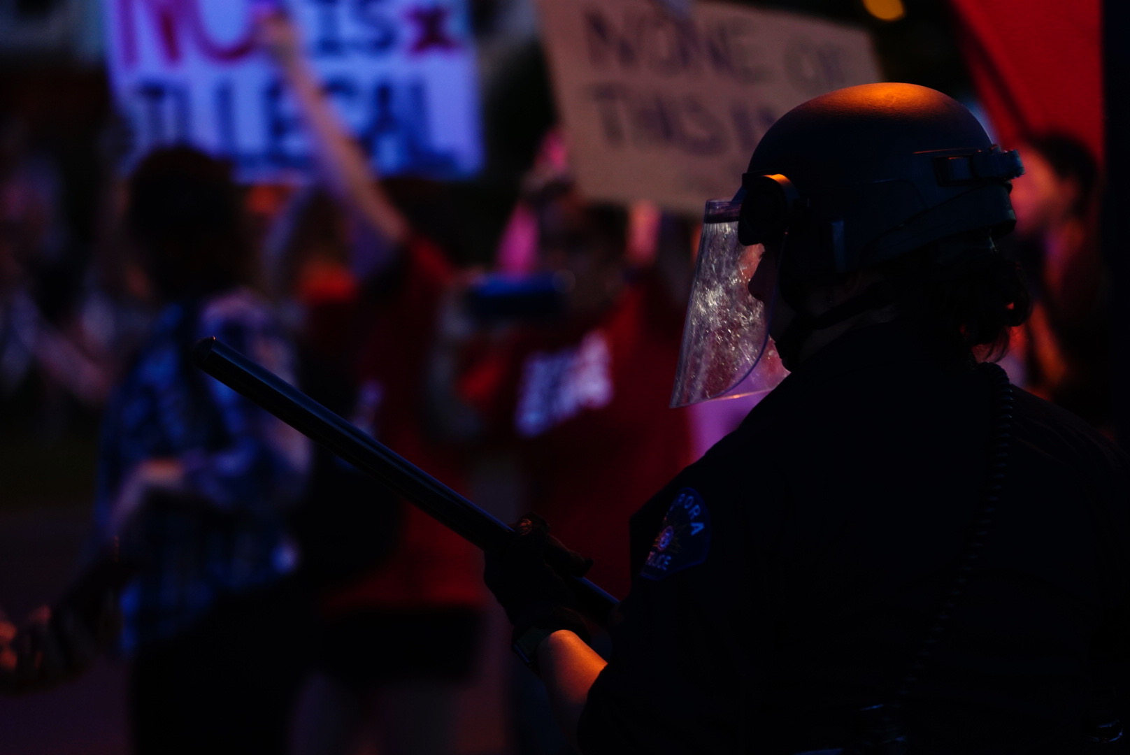 Protests at the Aurora facility have become increasingly larger and boisterous. A protest in July resulted in Aurora police standing by as scofflaws rushed a prison property front to deface flags.