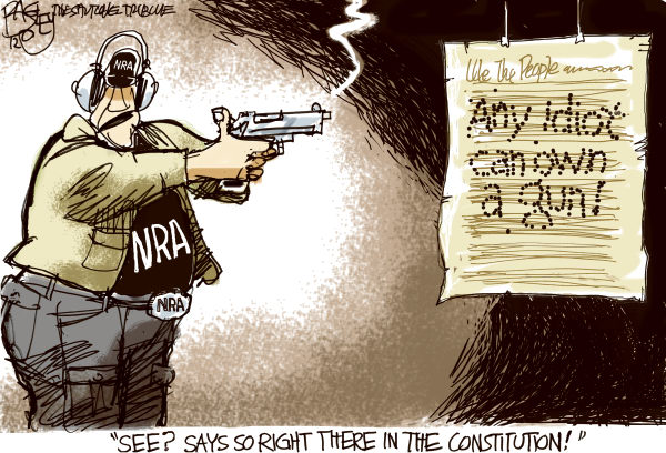The part of the Second Amendment omitted from the NRA’s slogan is: “A well regulated Militia, being necessary to the security of a free State…” Yes, well regulated—it’s in the Constitution!